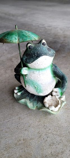 Frog Sculpture Resin Statue Garden Hold Up Umbrella Figurines Ornaments Decor