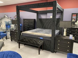 Slivano Velevt Tufted Upholstered Canopy Beds Available Colors: Black, Gray, & Cream $1,095Charlotte, NC
