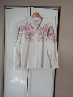 White And Pink Embroidered TOGETHER! Floral Button-up Shirt$20Carpentersvle, IL