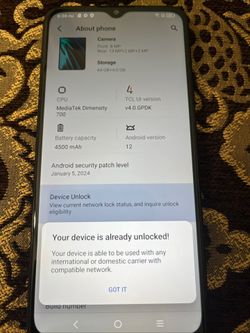 Tcl Phone Unlocked 5 G, 64gb$89Fort Worth, TX