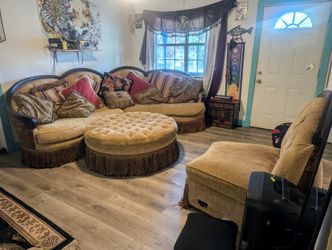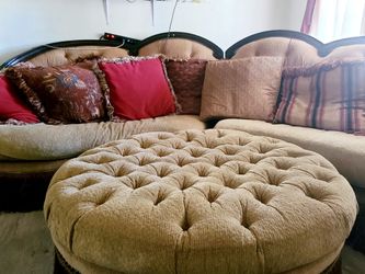 Antique Wood Trim Vintage Embroidered Couch With Tufted Ottoman $500Austin, TX