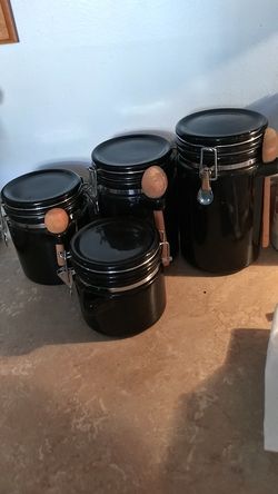 4 PIECE BLACK CERAMIC CANISTERS.$20Nashville, TN