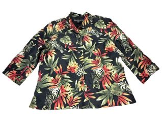 Silkland Zebra 100% Silk Jacket Blazer Womens Size 8 Black Tropical Palm EUC$22Kailua-kona, HI