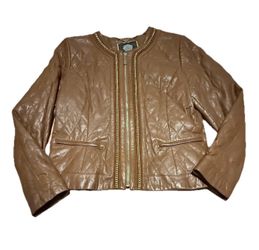Vince Camuto Women M Real Lamb Leather Quilted Jacket Gold Zips Buttery Brown$86Kailua-kona, HI