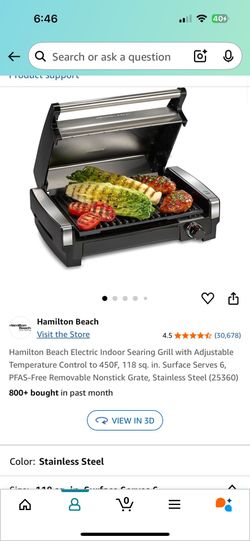 Indoor Grill -Hamilton Beach -Electric with Adjustable Temperature Control to 450F, 118 sq. in. Surface Serves 6, PFAS-Free Removable Nonstick G$35Snohomish, WA