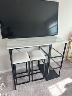Modern 3-Piece Counter Kitchen Bar Table Set with 2 Compact Bar Stools, Metal Frame, Shelf Storage, Brass Pub Set with Faux Marble$110Snohomish, WA