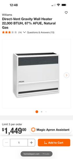 Williams Wall Gas Heater 22k Bthus$650Crestline, CA