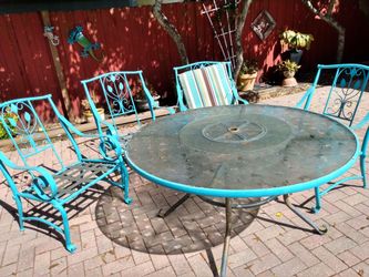 Table with lazy Susan and four metal chairs. Needs TLC$100Tampa, FL