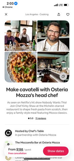 Pasta Making Class Mozza$198La Canada Flt, CA