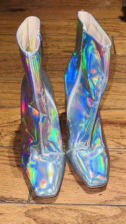 Holographic silver ankle boots$20Highland, CA