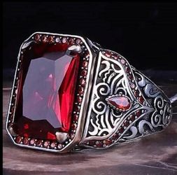 Size 8 Men's Fashion Ring Red Zircon Square Stone With Red Pendant 925 Sterling Silver Plated$18Burlington, VT