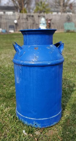 Vintage 24" Tall Blue Metal Milk Jug.$80Harper Woods, MI