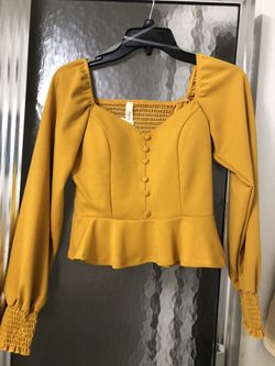 A’GACI Button Front Peplum Blouse Mustard Yellow Size Small$25Fort Lauderdale, FL