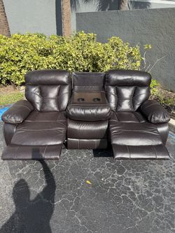 Beautiful Red Wine Burgundy Brown Leather Sofa Couch Sectional Recliner 3 Seater Living Room $360Laud Lakes, FL