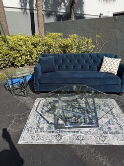 Beautiful Blue Green Turquoise Teal Velvety Sofa Couch Sectional Living Room Set Middle Glass Coffee Table Side End Tables$499Laud Lakes, FL