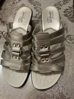 Strictly Comfort Leather 8 M Women Slip On Sandals Brushed Gold 2” Heel$15Torrance, CA