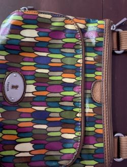 Fossil Multicolor Feather Pattern Keyper Crossbody Bag Purse Polka Dot Lining$30Los Angeles, CA