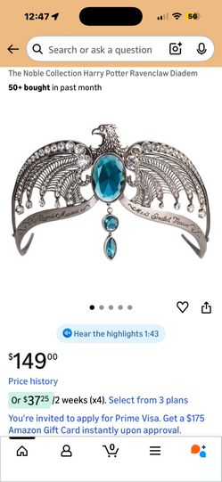 The Noble Collection Harry Potter Ravenclaw Diadem$110Hesperia, CA