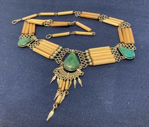 Turquoise And Bamboo Necklace Alpaca Wire$20Berkeley, CA