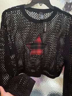 Hot Topic Red Plaid Star Fishnet Black Crop Top Sweater 2X Girls Size $15$15Carson, CA