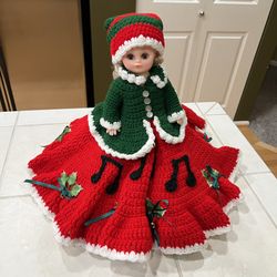 Antique Crocheted Christmas Caroler Doll Handmade w/ Stand, 14.5” Tall$30Snohomish, WA