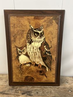 This is a vintage owl print titled Screech Owls wood mounted by artist Richard Hinger Mid Century 1960s 1970s$30Phoenix, AZ