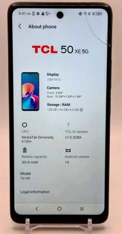 TCL 50 XE 5G - Blue - 128GB - Visible Network Only - Smartphone, Android 14.$40Corona, CA