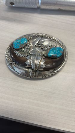 Native American Navajo TD Sterling bear claw and turquoise belt buckle $800Long Beach, CA
