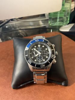 SEIKO CHRONOGRAPH SSCO17P1 SOLAR CHRONOGRAPH STAINLESS STEEL QUARTZ BATMAN BLUE AND BLACK BEZEL $295Bloomfield, NJ