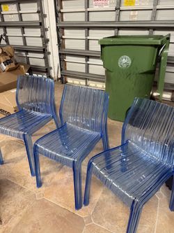 3 Clear Blue Chairs - Patio, Office, Stackable $30Pembroke Pines, FL