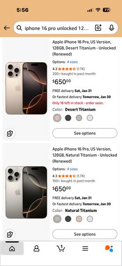 iPhone 16 Pro Unlocked 256GB $679 or $60 Down!$679Tampa, FL