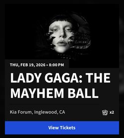 🎵 Lady Gaga Tickets – Section E Row 6 – This Thursday$600Monterey Park, CA