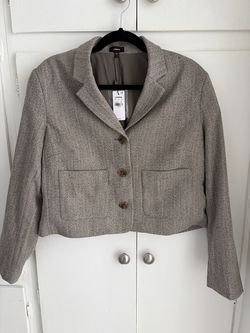 Express Textured Herringbone Cropped Slim Patch Pocket Blazer in Multi Beige, Women’s, size L$10Los Angeles, CA