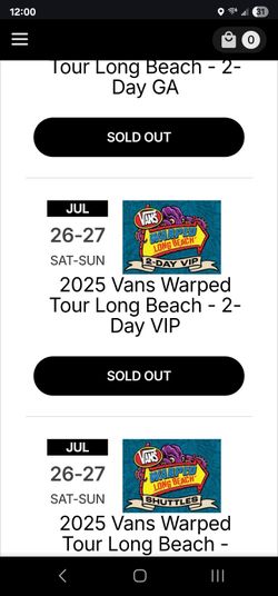 Vans Warped Tour VIP 2 Day Tickets$500Los Angeles, CA