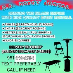 Tables, Chairs, Heaters, Canopies, Party Supplies$5Perris, CA