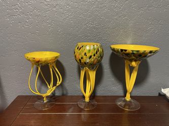 Vintage Jozefina Krosno Hand Blown Art Glass Compote Mid Century Modern Yellow Cased Glass Bowl$25Tamarac, FL