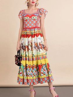 Derby Party Dress, Boho, Long, Colorful Dress With Short Ruffles Sleeves $90Glendale, CA