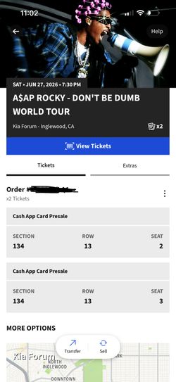 SELLING 2 A$AP ROCKY TICKETS$250Anaheim, CA