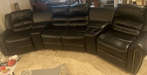 🛋️ Leather Reclining Couch – Seats 4 – Cupholders + Storage – Good Condition!$300Riverside, CA