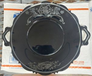 Hazel Atlas Vintage Black Glass Tid Bit Tray With Sterling Silver $22Kannapolis, NC