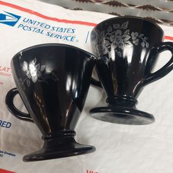 Hazel Atlas Black Glass And Sterling Silver Cream And Sugar $21Kannapolis, NC