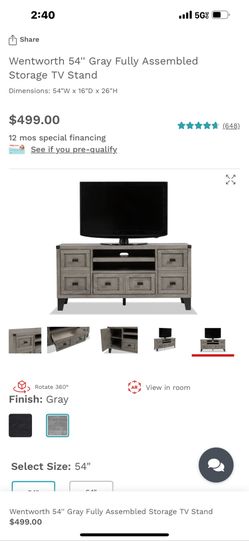 Wentworth 54'' Gray Fully Assembled Storage TV Stand$220Arlington Heights, IL