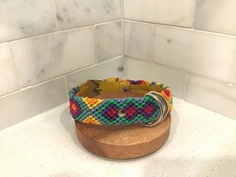 Handmade Dog Collar – 14” S – Yellow Leather & Multicolor Tribal Weave$20Scottsdale, AZ