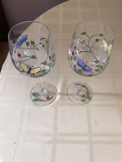 Need A Beautiful Unique Gift? 2 Hand Painted Stem Wine Glasses$10San Diego, CA