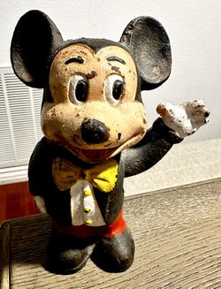Mickey Mouse Cast Iron Coin Bank Vintage black suit, yellow tie, red pants. $90Las Vegas, NV
