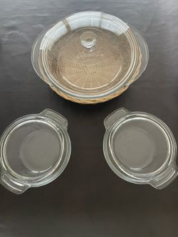 Brand New Anchor Clear Glass Casserole With Lid And Basket + 2 Ovenware Casseroles With Lids$15Plano, TX