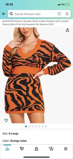 BLACKTHX Pullover Sweater Dress V Neck Sweater with Lantern Sleeve,Zebra Print Fall Sweaters for Women 2022$10Joliet, IL