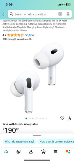Apple AirPods Pro (2nd Gen) Wireless Earbuds, Up to 2X More Active Noise Cancelling, Adaptive Transparency, Personalized Spatial Audio MagSafe Chargin$120Joliet, IL