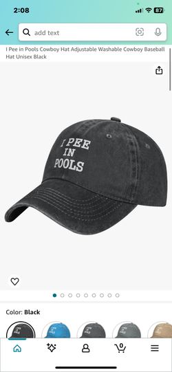I Pee in Pools Cowboy Hat Adjustable Washable Cowboy Baseball Hat Unisex Black$5Joliet, IL