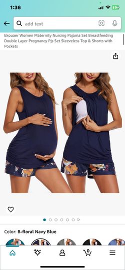 Ekouaer Women Maternity Nursing Pajama Set Breastfeeding Double Layer Pregnancy Pjs Set Sleeveless Top & Shorts with Pockets$10Joliet, IL